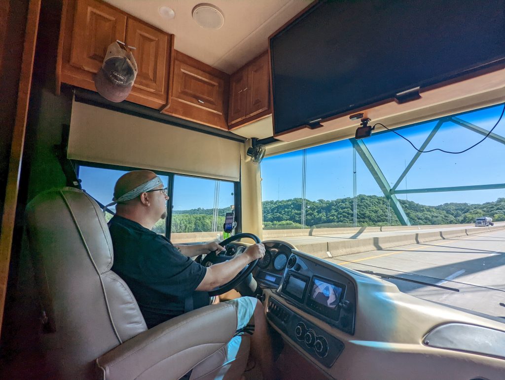 From Wilsey, we headed to Manhattan, KS where we had a couple of windshield chips checked out (nothing serious…yet) and stayed at a Corps of Engineers park that we loved (and returned to later in the year). After Manhattan came a rough (for us, anyway) five consecutive days of travel that took us through Missouri, Iowa, Wisconsin and the UP, coming to rest in Baraga, MI where Miles once again joined us.