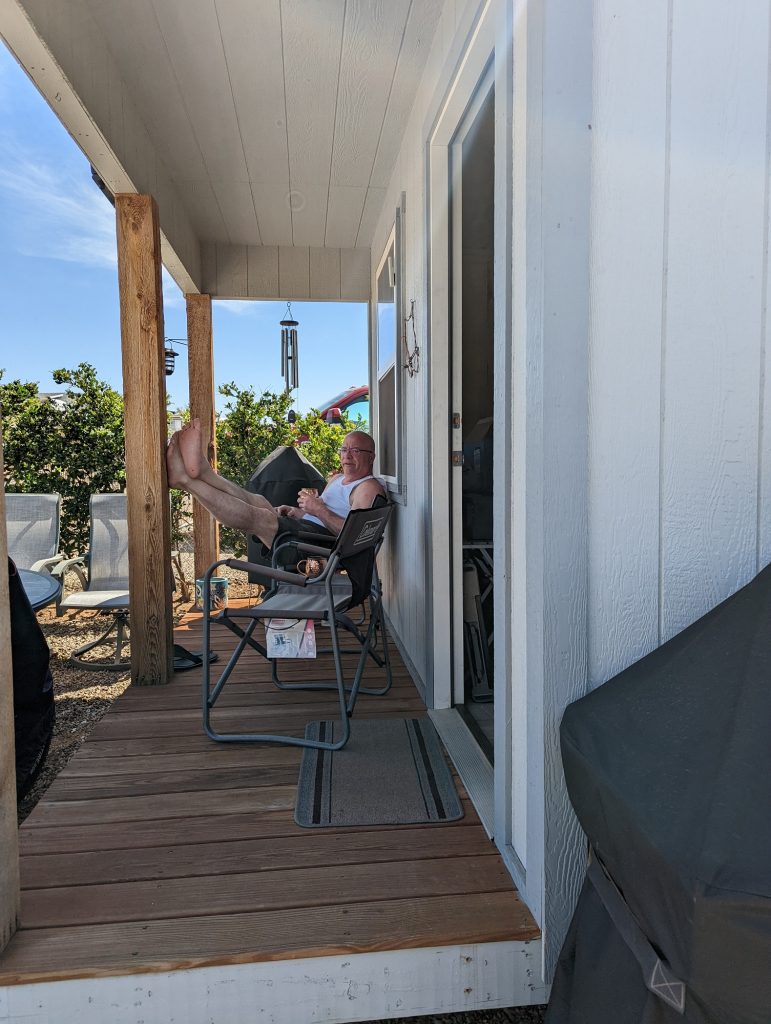 By Mid-March, we were finally on our site. Rather than buying a new casita, we had the one from New Mexico moved to Arizona. As ever, when you’re parking in an RV park, some guy is gonna be kibitzing with a beer in his hand. Say “hi” to Mel and Randy from Minnesota, a couple of our new neighbors.