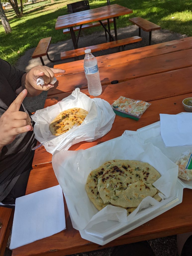Some of the best foods we’ve found on our travels have been from food trucks – here’s pupusas we got from Amelia Salvadoran Food and ate in a park in Taos